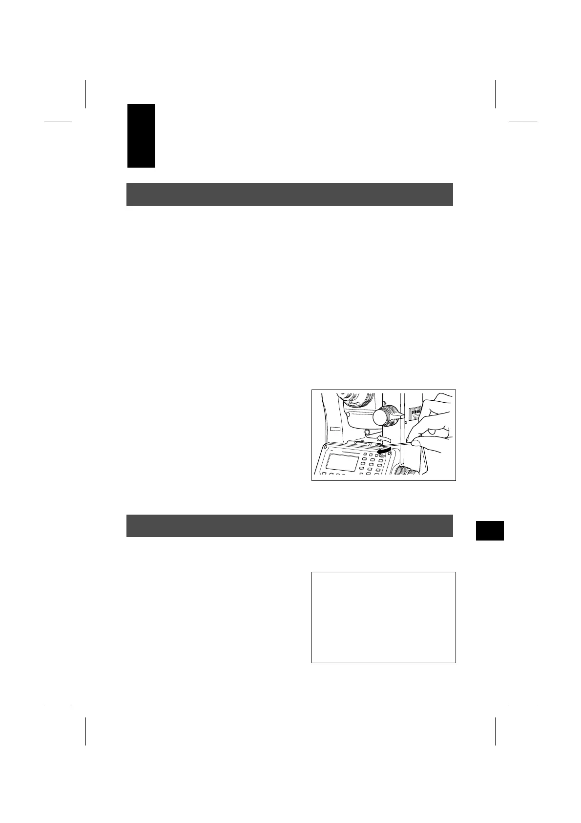 (1) Set up the instrument on the tripod and follow the leveling procedures