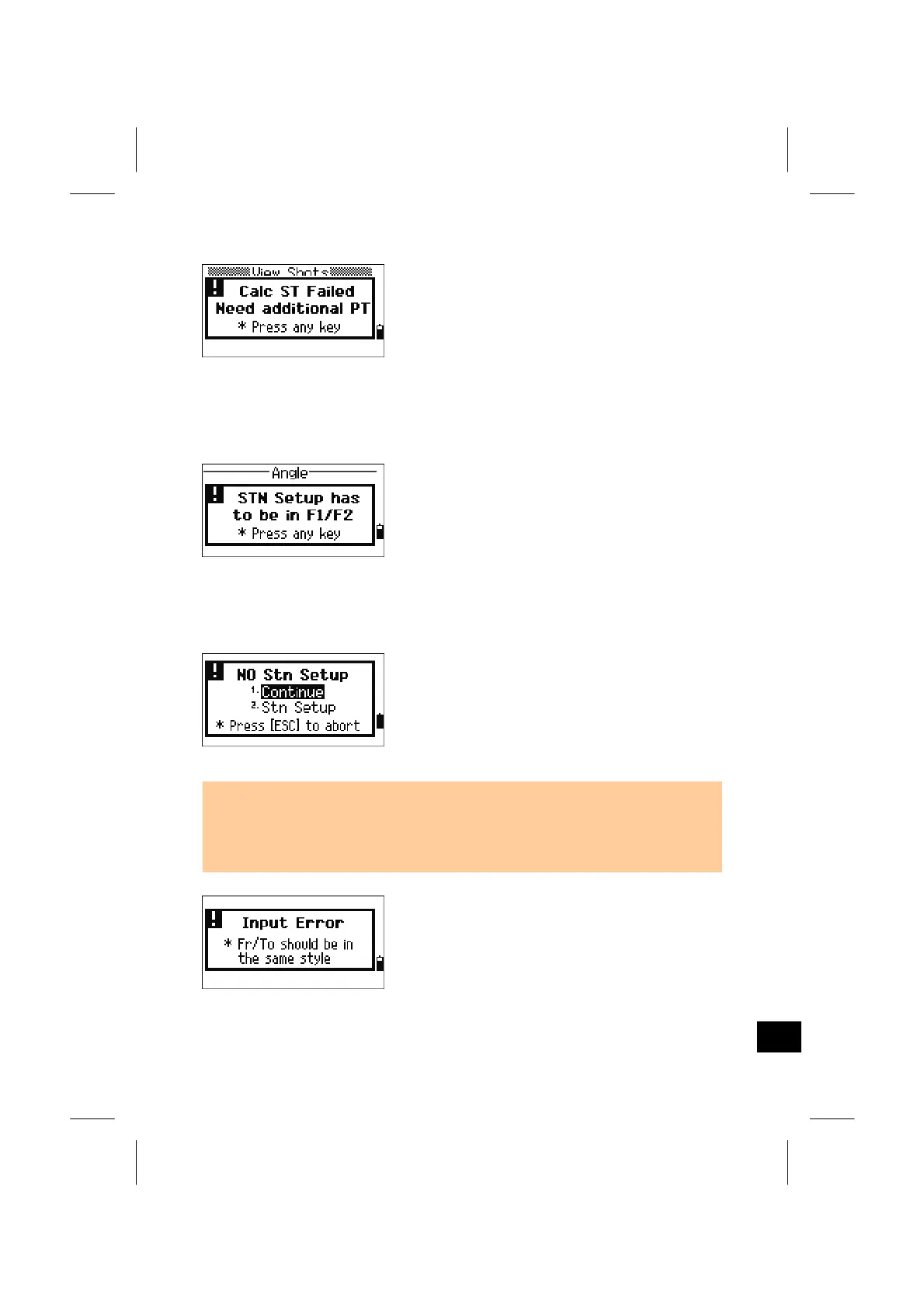 • In Stakeout, the Last ST record will NOT be resumed by the [1.Continue]. Only