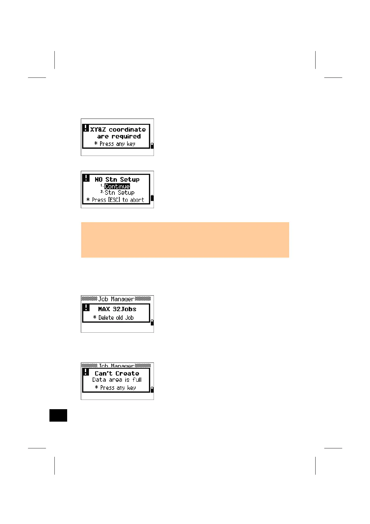 No space to create a job or record a point is