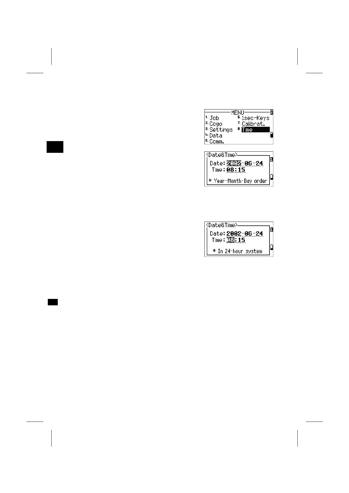 Pressing [ENT] on the “Day” field moves the cursor