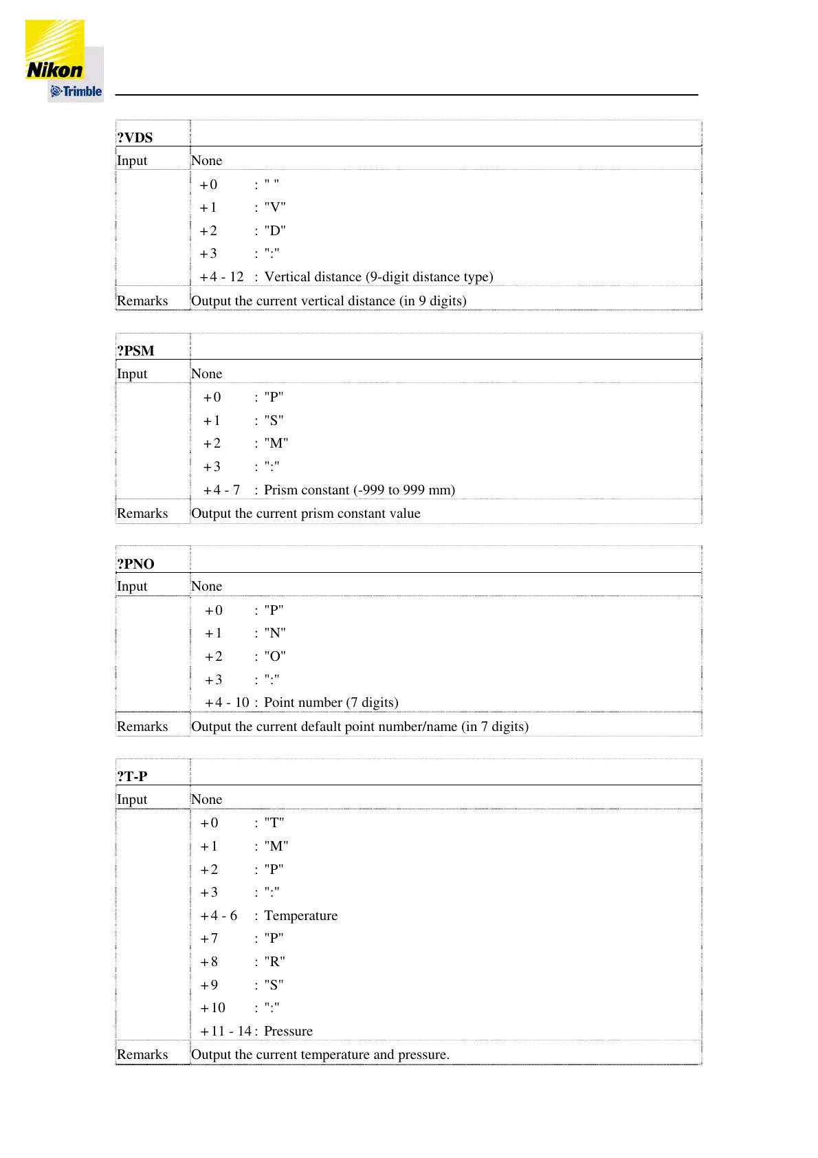 + 4 - 7 : Prism constant (-999 to 999 mm)