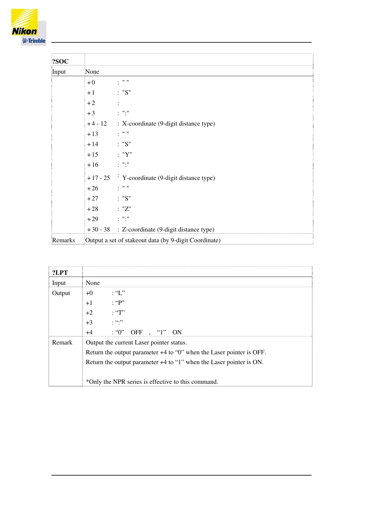 Remarks Output a set of stakeout data (by 9-digit Coordinate)