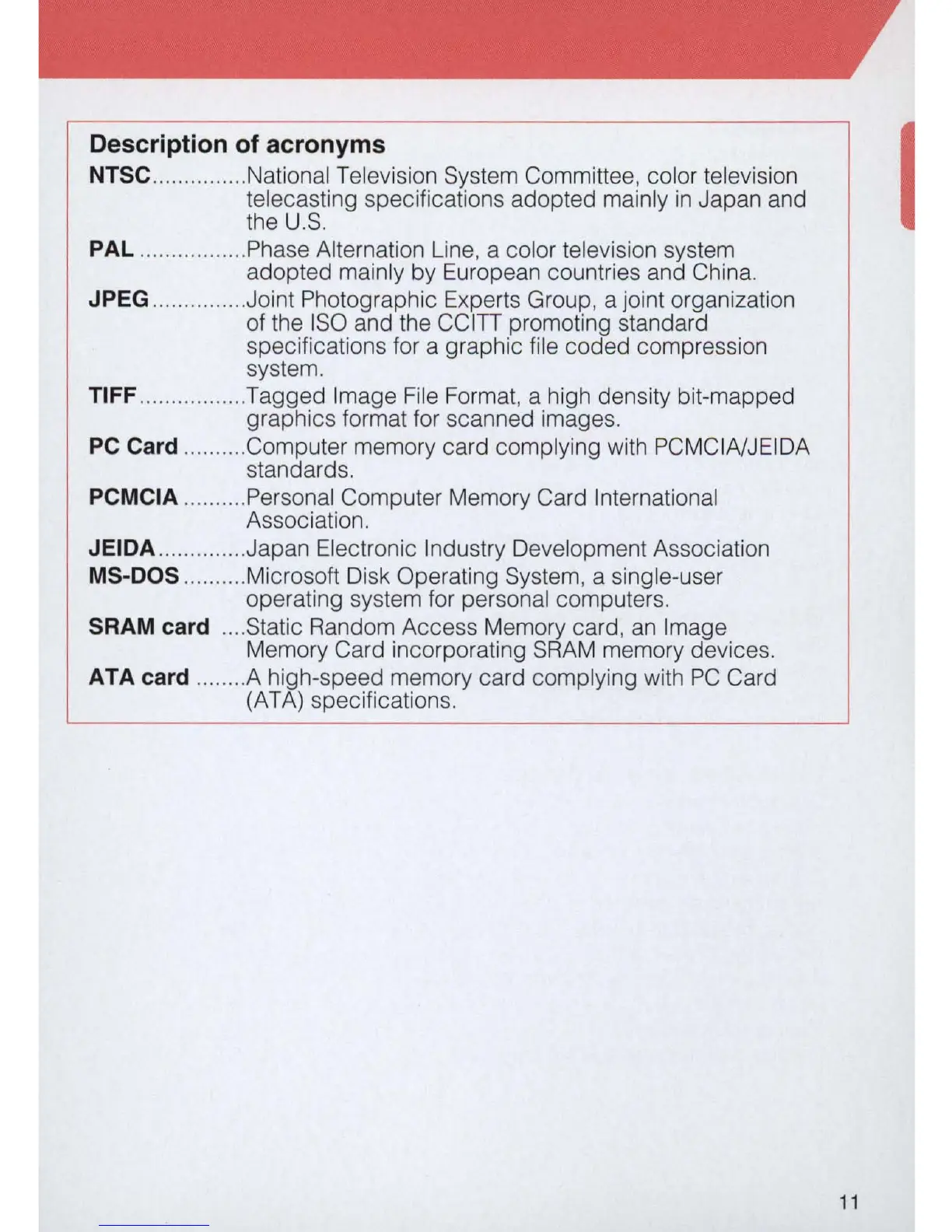 PC Card .......... Computer memory card complying with PCMCIAlJ