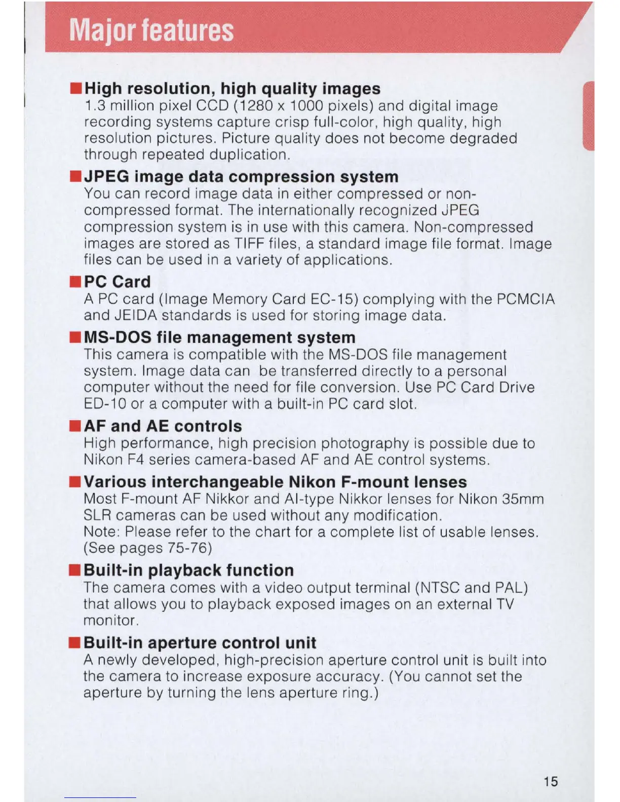 1,3 million pixel CCD (1280 x 1000 pixels) and digital image