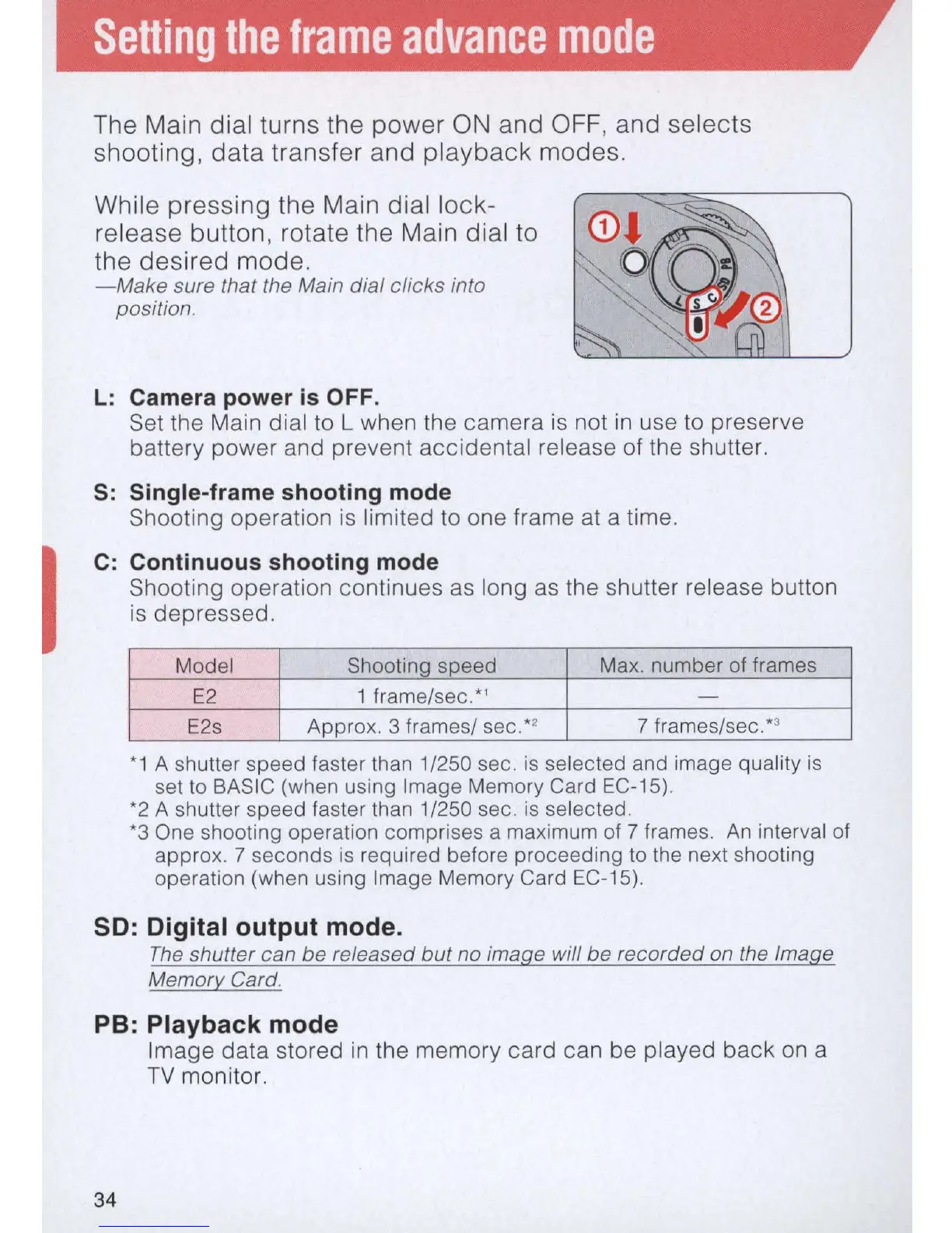 release button, rotate the Main dial to