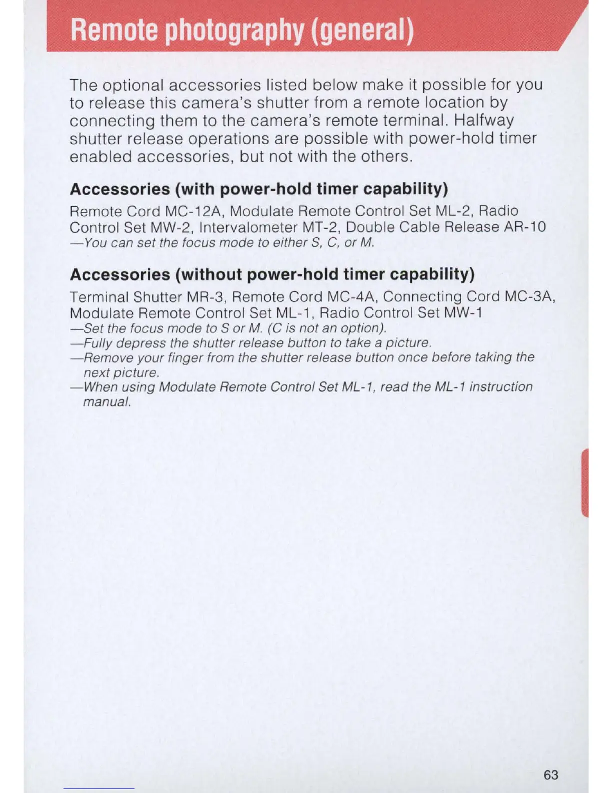 Terminal Shutter MR-3, Remote Cord MC-4A, Connecting Cord MC-3A,