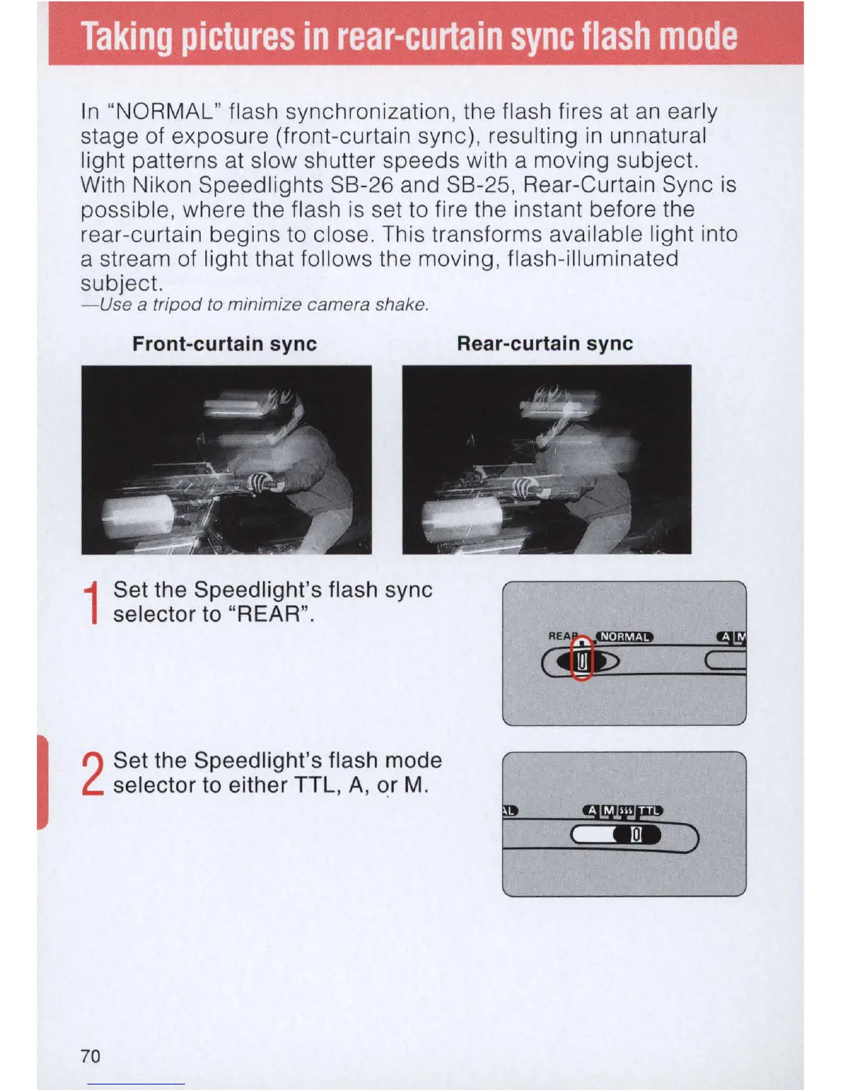 With Nikon Speedlights SB-26 and SB-25, Rear-Curtain Sync