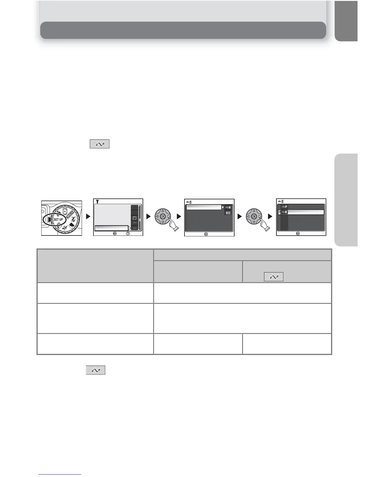 the USB option selected in the SET-UP menu of the camera. After consulting the