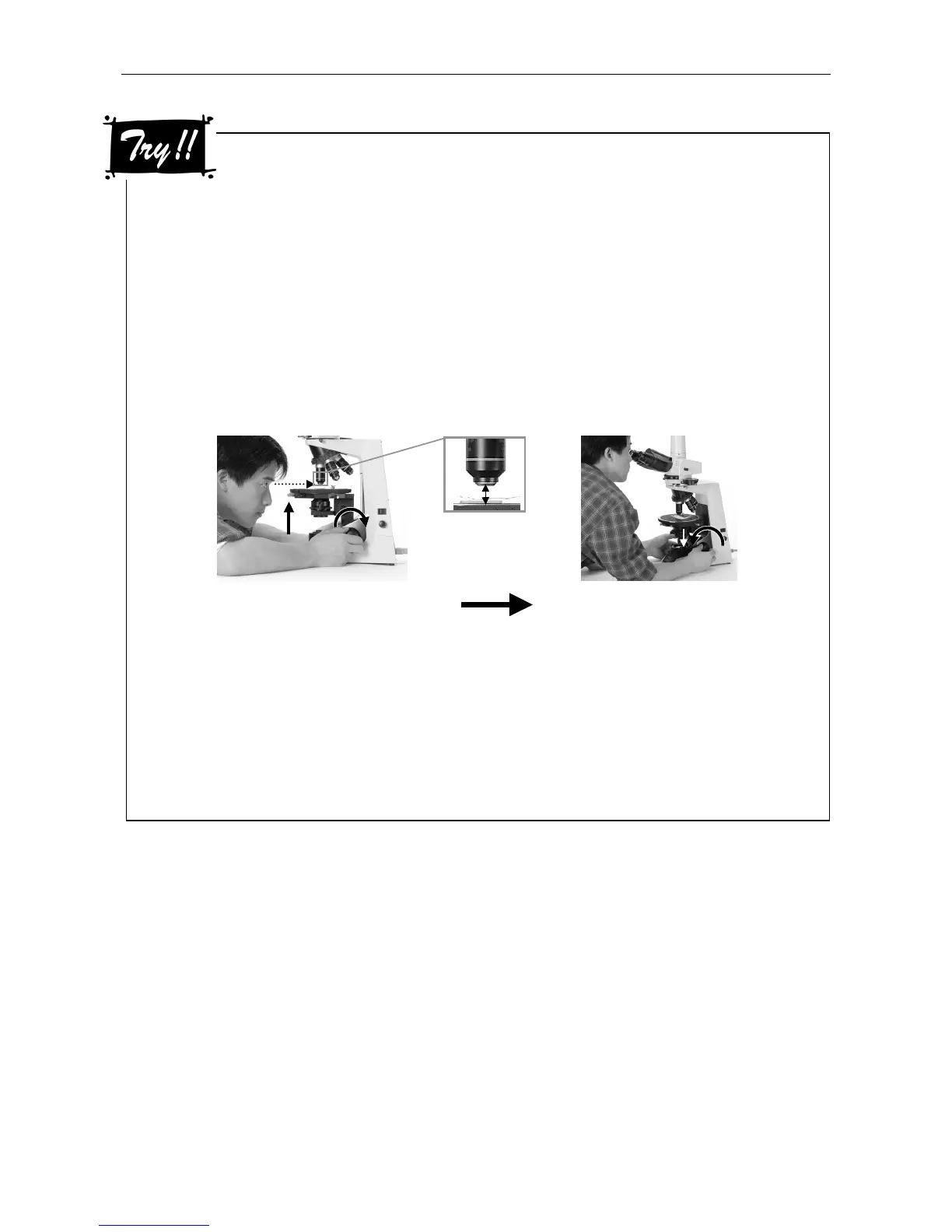 objective, look into the eyepieces, and rotate the fine focus knob slightly to find the focal point.