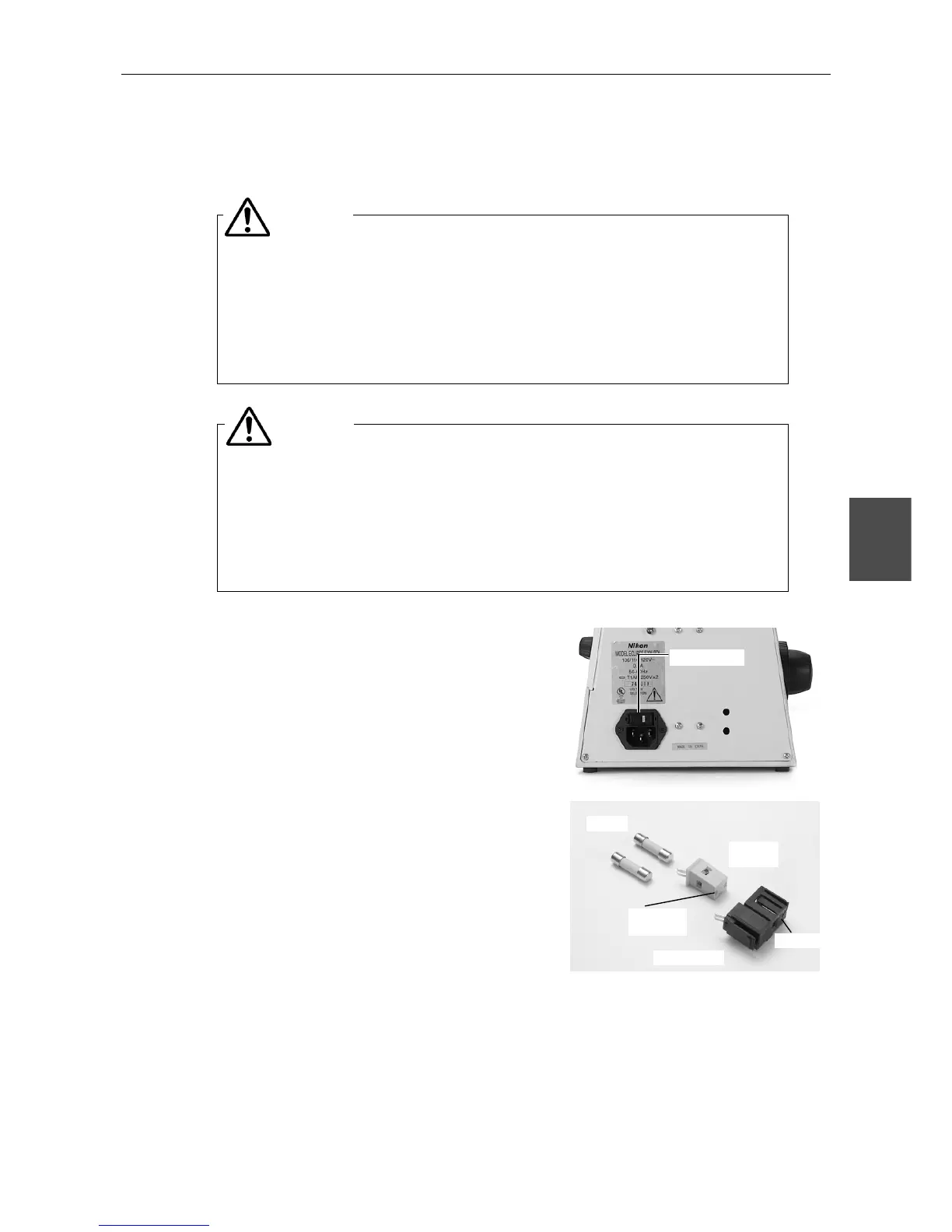 • Use the specified fuse. Using a different fuse may damage the