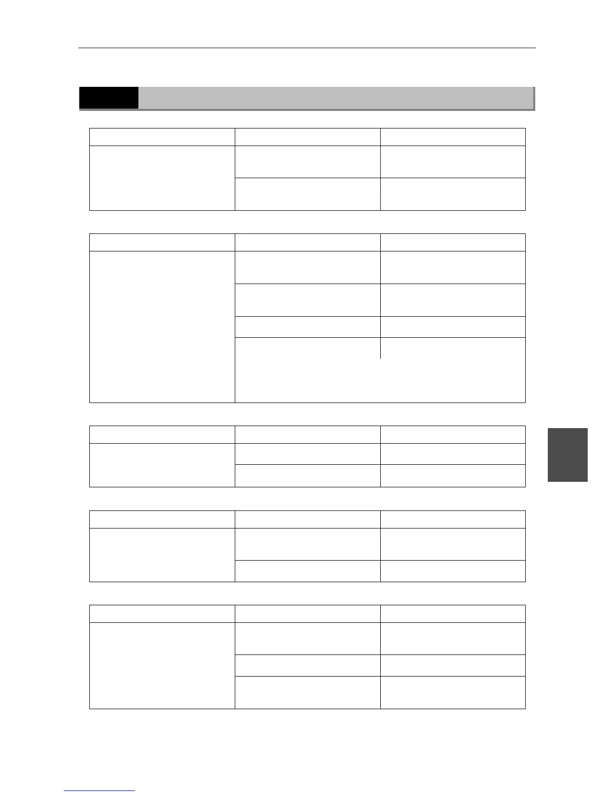 VIII Troubleshooting Tables