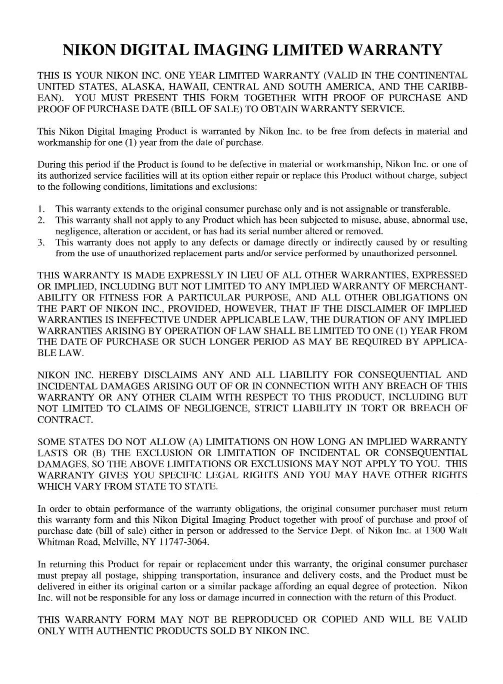 Nikon EH-52 - Nikon Digital Imaging Limited Warranty