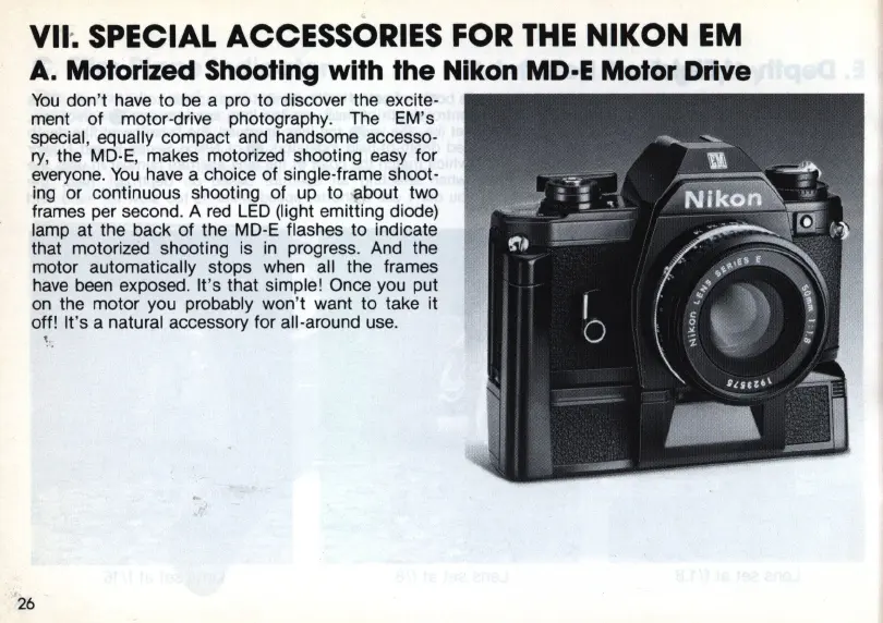 A. Motorized Shooting with the Nlkon MD·E Motor Drive