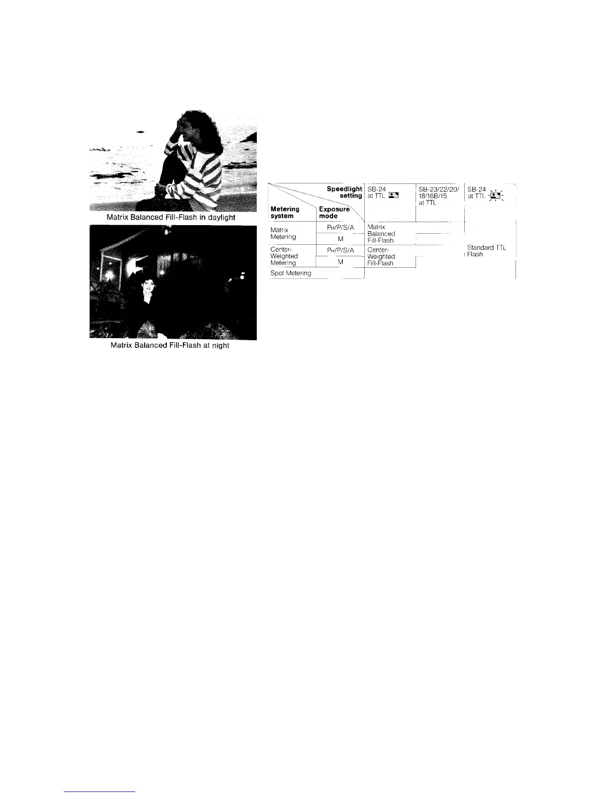 Matrix Balanced Fill-Flash and Center-Weighted Fill-Flash.