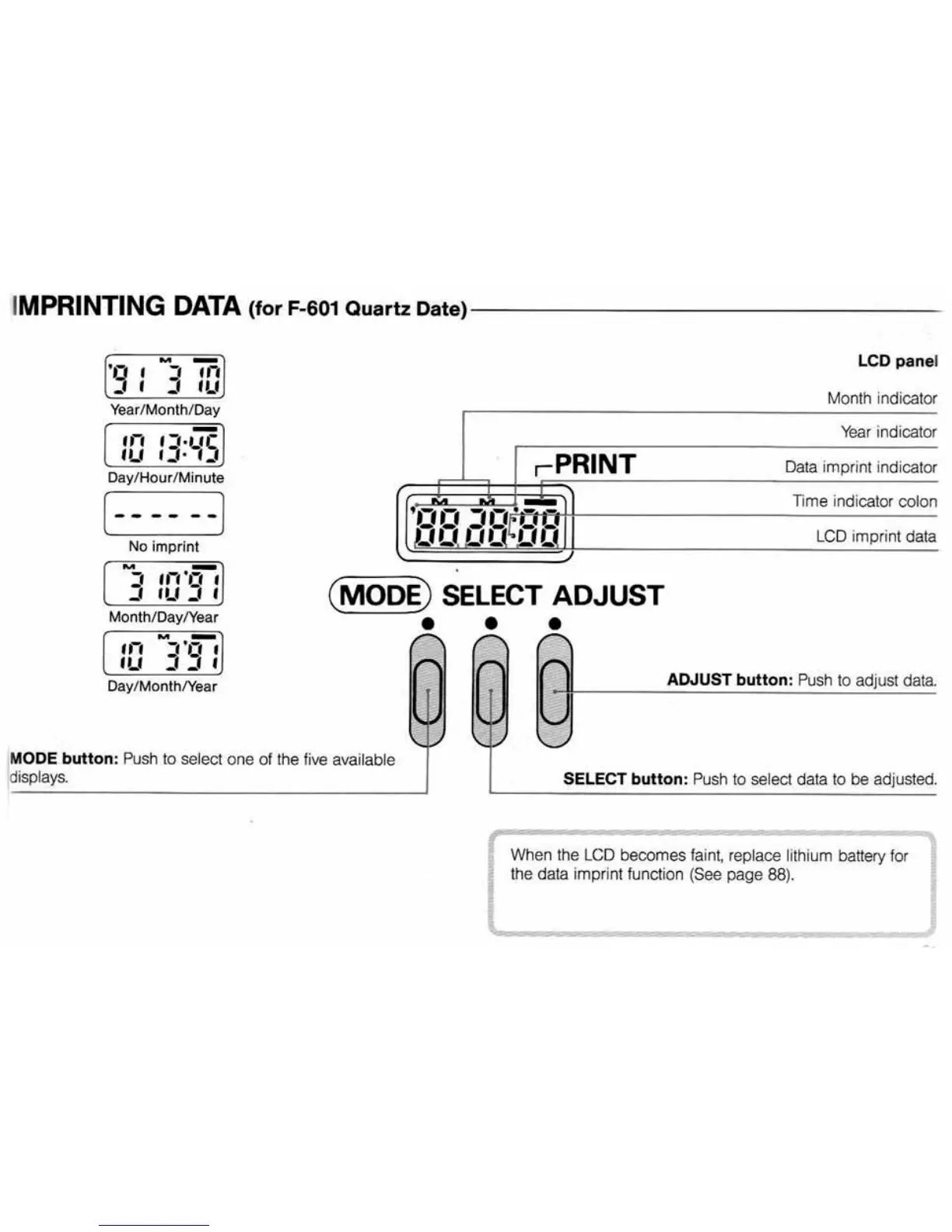 Nikon F-601 - Imprinting Data (for F-601 Quartz Date)