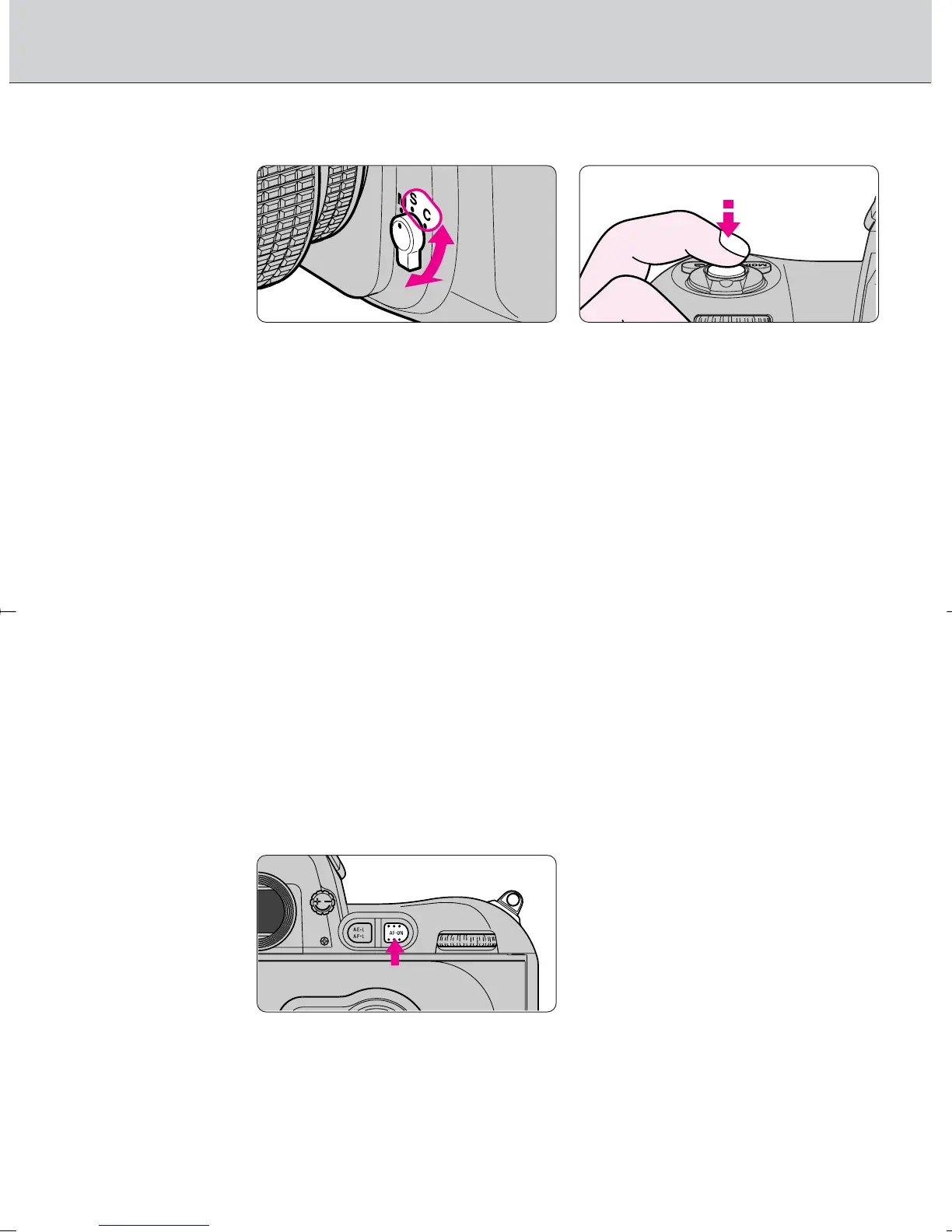 • Set focus mode selector to S (Single Servo AF with Focus-Priority) or C