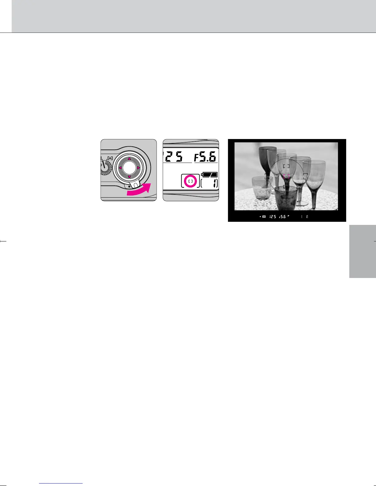 direction. Selected focus area is indicated in red in the viewfinder. Selected