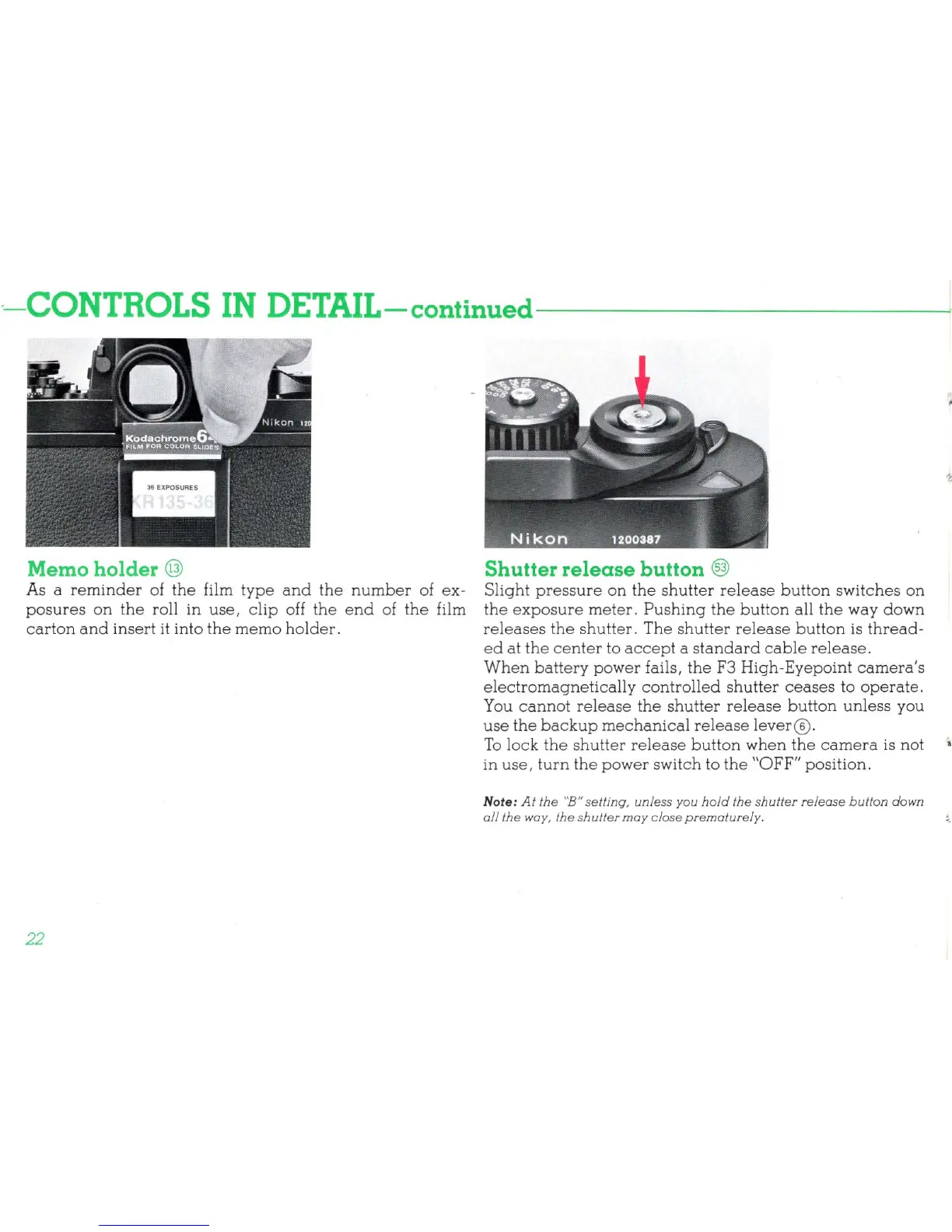 Nikon F3 High-Eyepoint - Memo Holder; Shutter Release Button