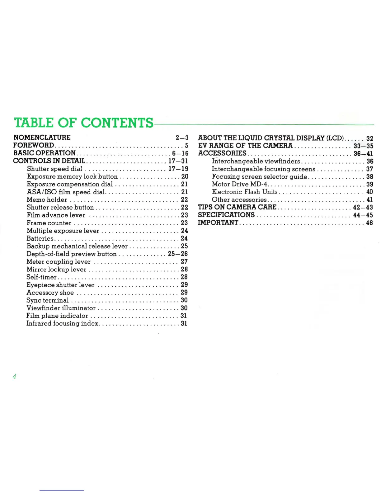 Nikon F3 High-Eyepoint - Table of Contents