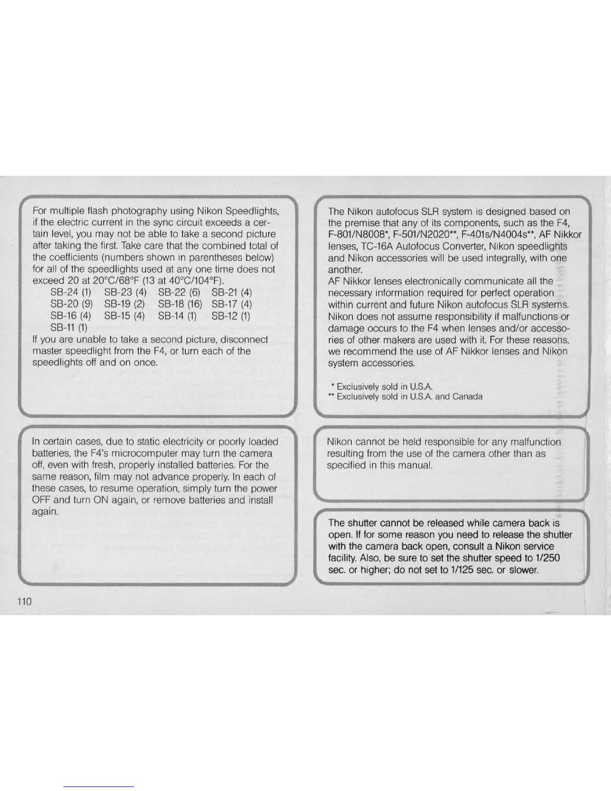batteries, the F4's microcomputer may turn the camera