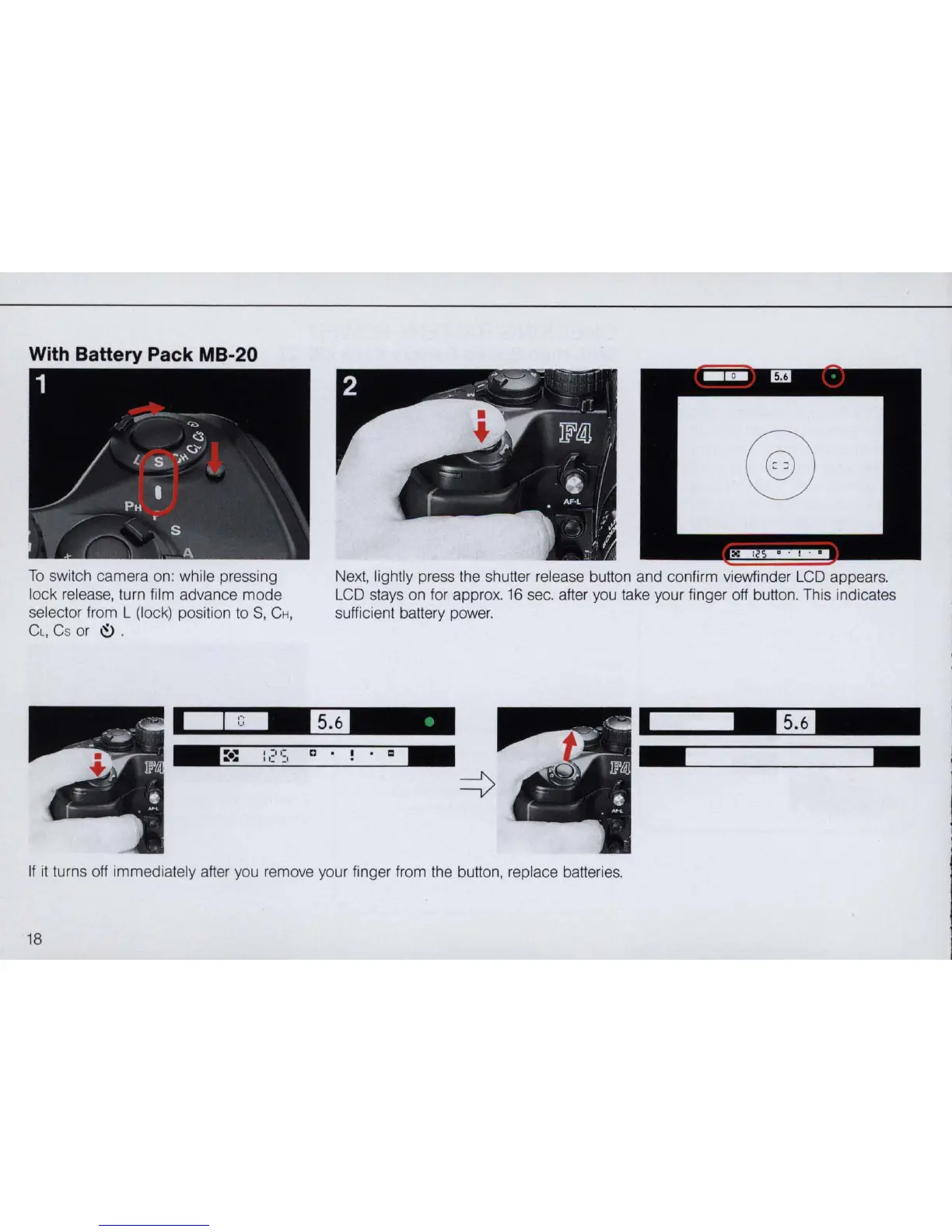 Next, lightly press the shutter release button and confirm viewfinder LCD appears.