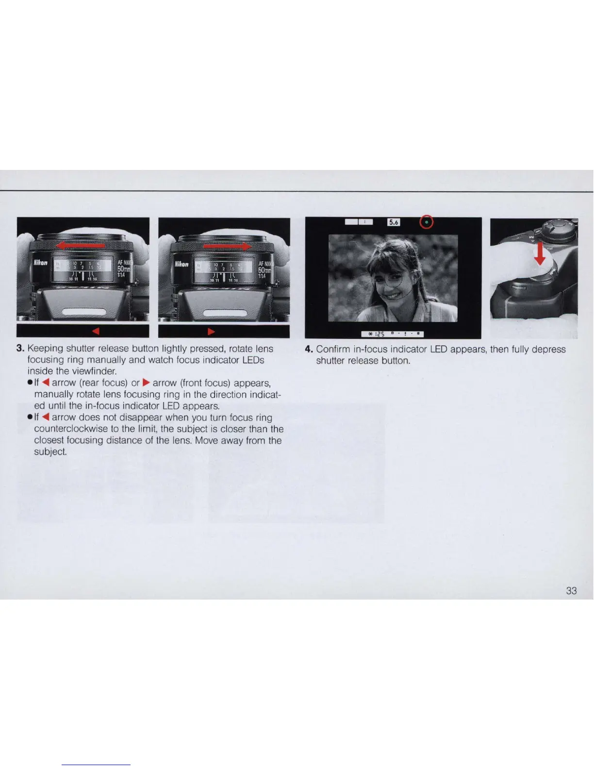 manually rotate lens focusing ring in the direction indicat-