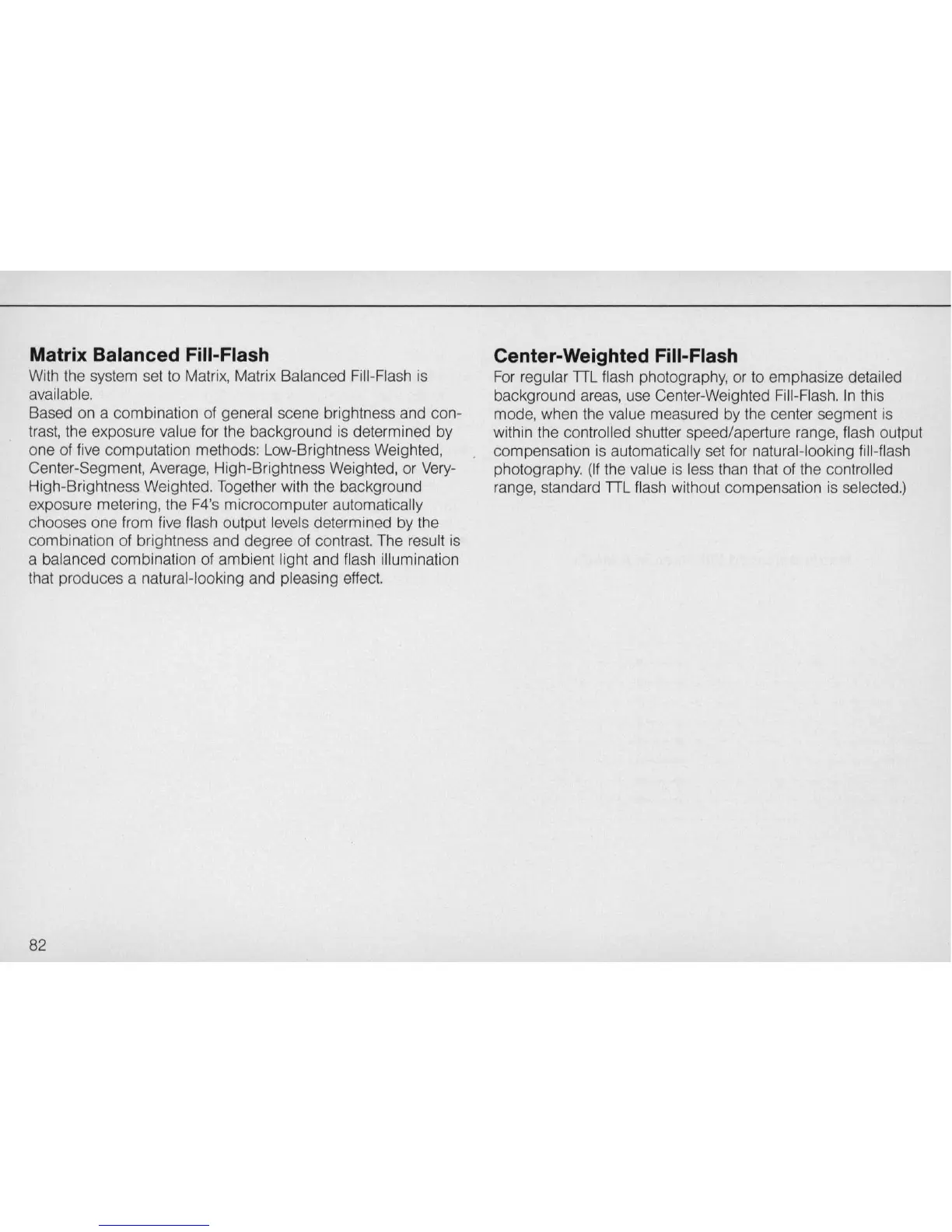 background areas, use Center-Weighted Fill-Fl