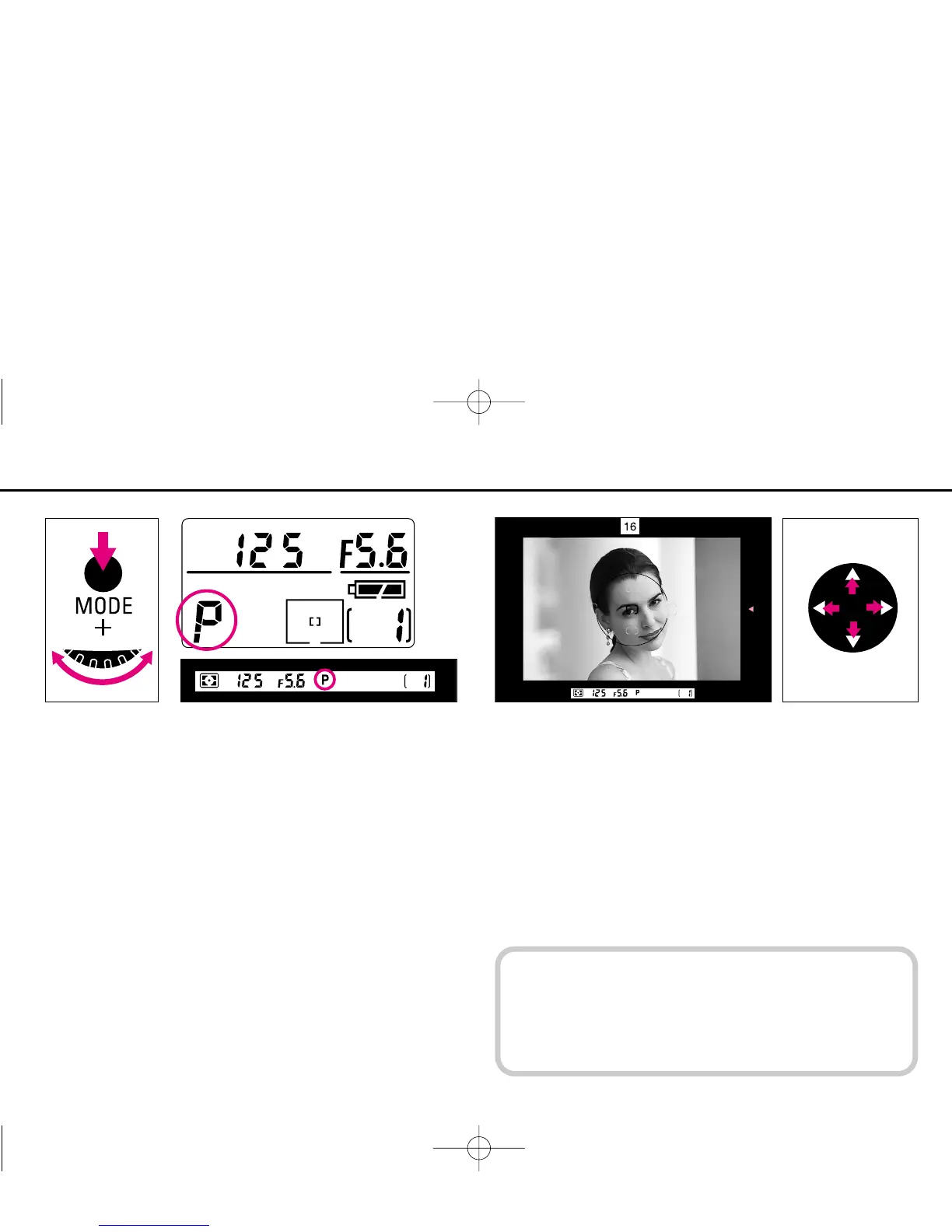 (MODE) button so ¡ appears in the top LCD panel and P in the