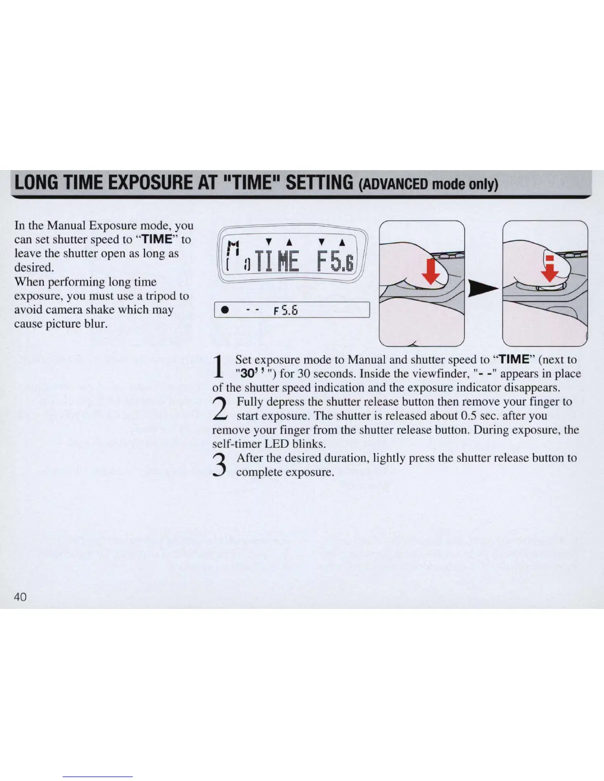 for 30 seconds. Inside the viewfinder, "- -" appears in place