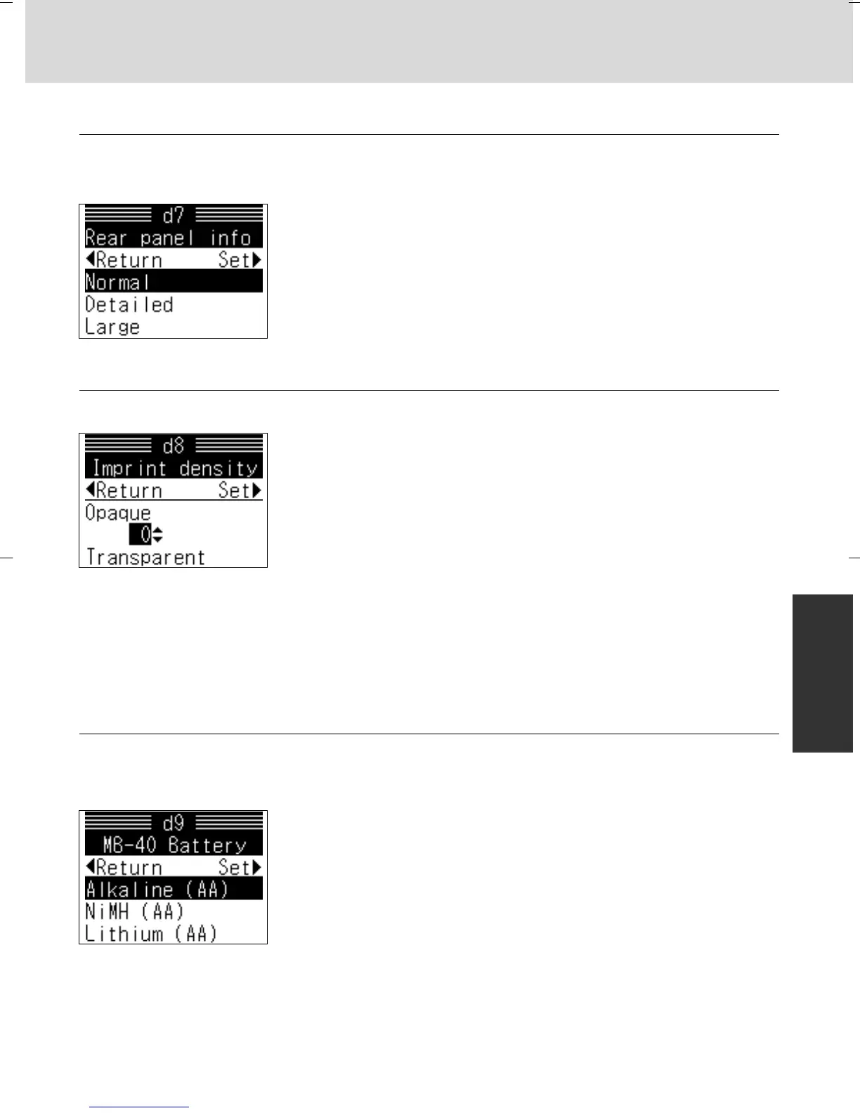• Press > on the multi-selector after selecting “Imprint density”. Display for setting