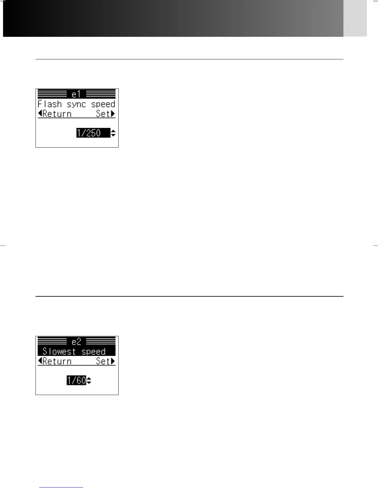 • Press > on the multi-selector after selecting “Sync speed”. Display for setting flash
