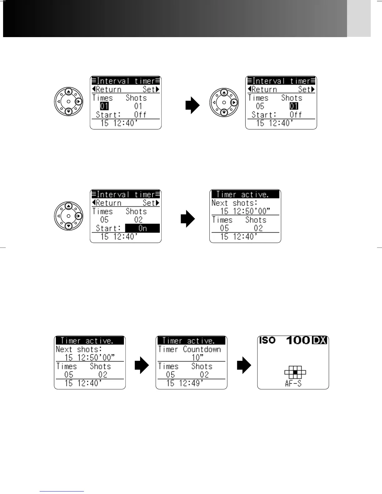 • Timer starts to count down 10 sec. before the first shot. The indicated number