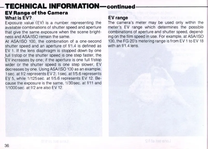 combinations of aperture and shutter speed, depend-