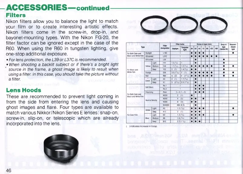 Nikon filters allow