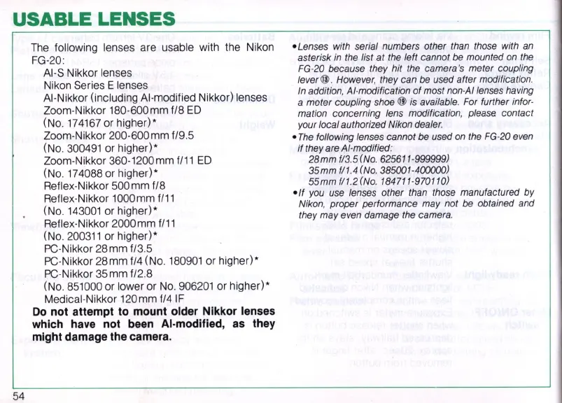 AI-Nikkor (including AI-modified Nikkor) lenses