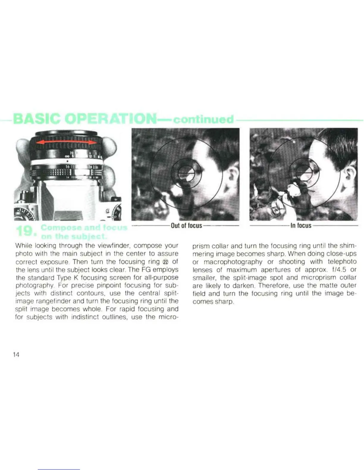 correct exposure. Then turn the focusing ring