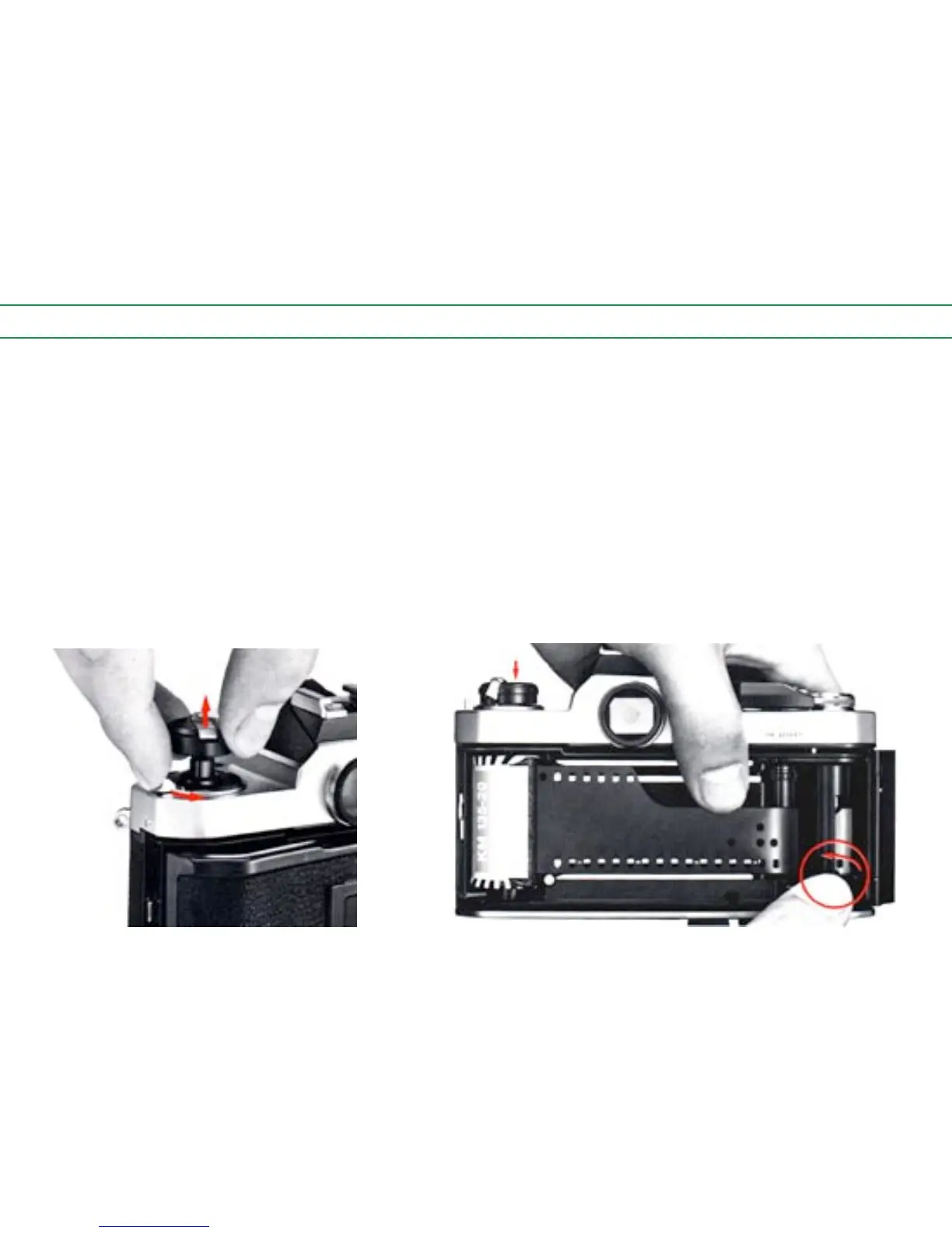 to the rear and lifting the film rewind knob as far as it will