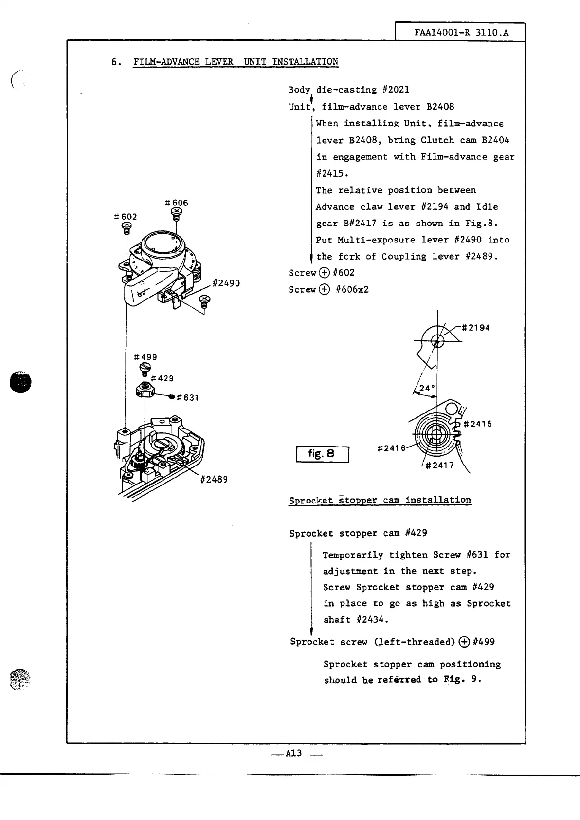 Nikon FM2n - Film-Advance Lever Unit Installation; Sprocket Stopper Cam Installation