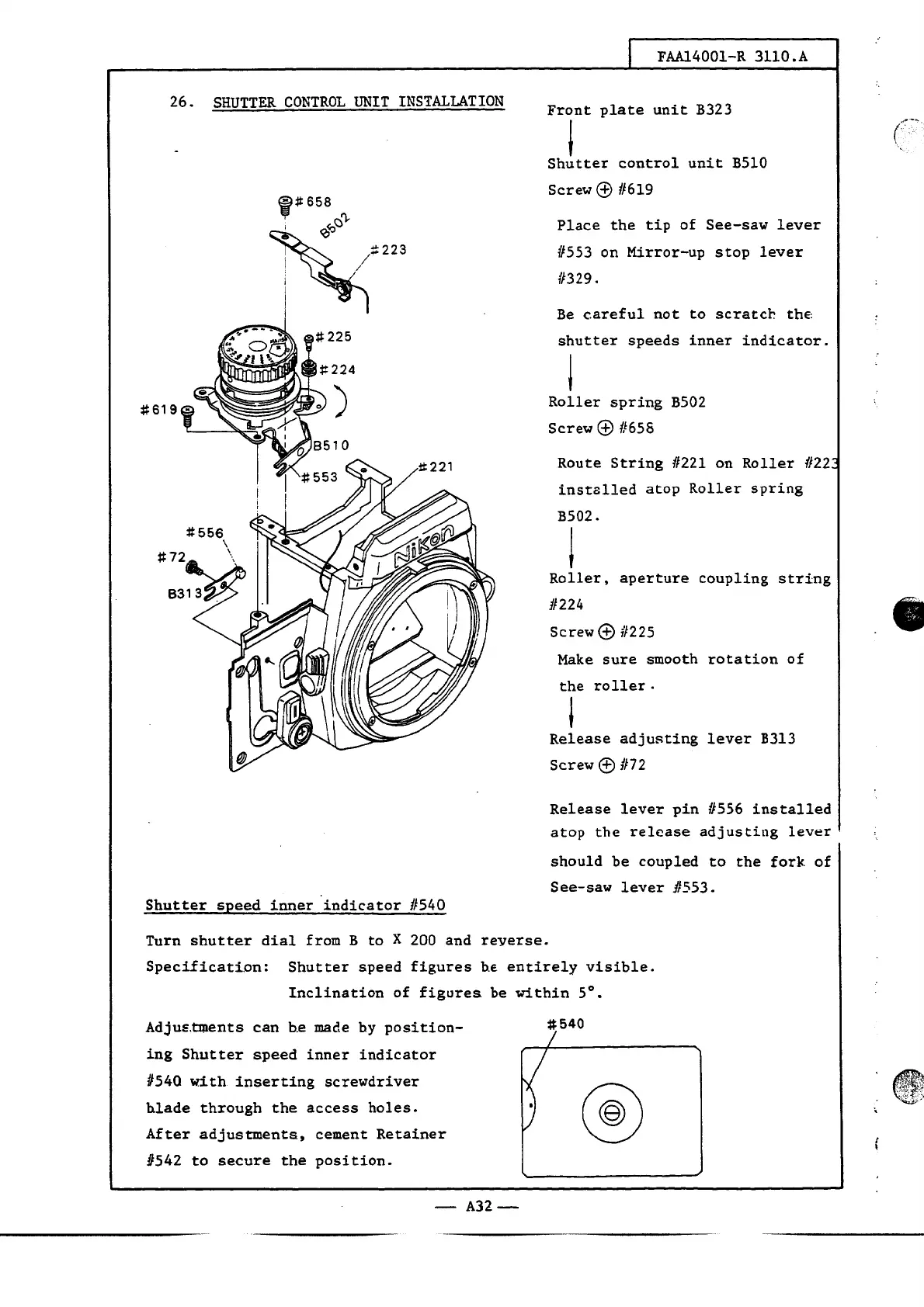 Nikon FM2n - Shutter Control Unit Installation; Shutter Speed Inner Indicator