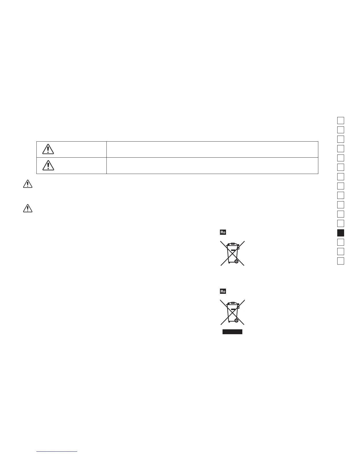 ■ Pot să apară niveluri periculoase de deteriorare dacă folosiți incorect echipamentul, când sunt afișate următoarele indicații.