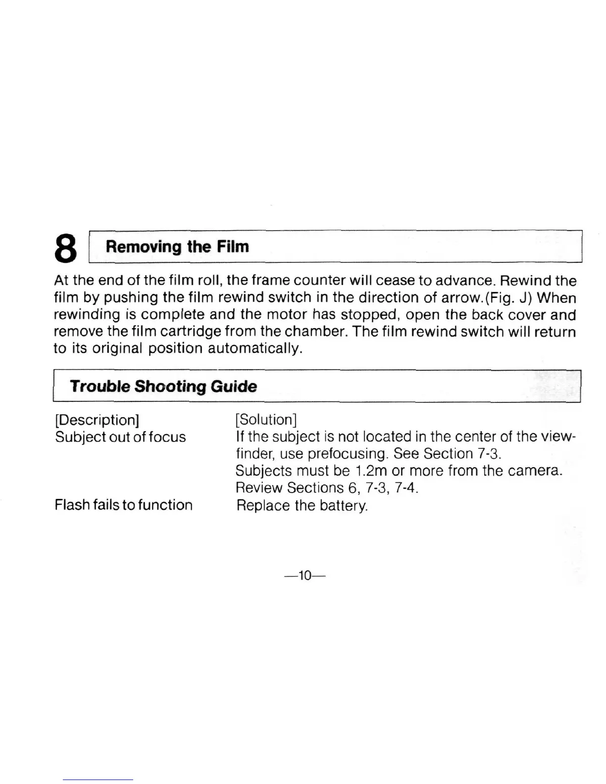 film by pushing the film rewind switch in the direction of arrow.(Fig. J) When