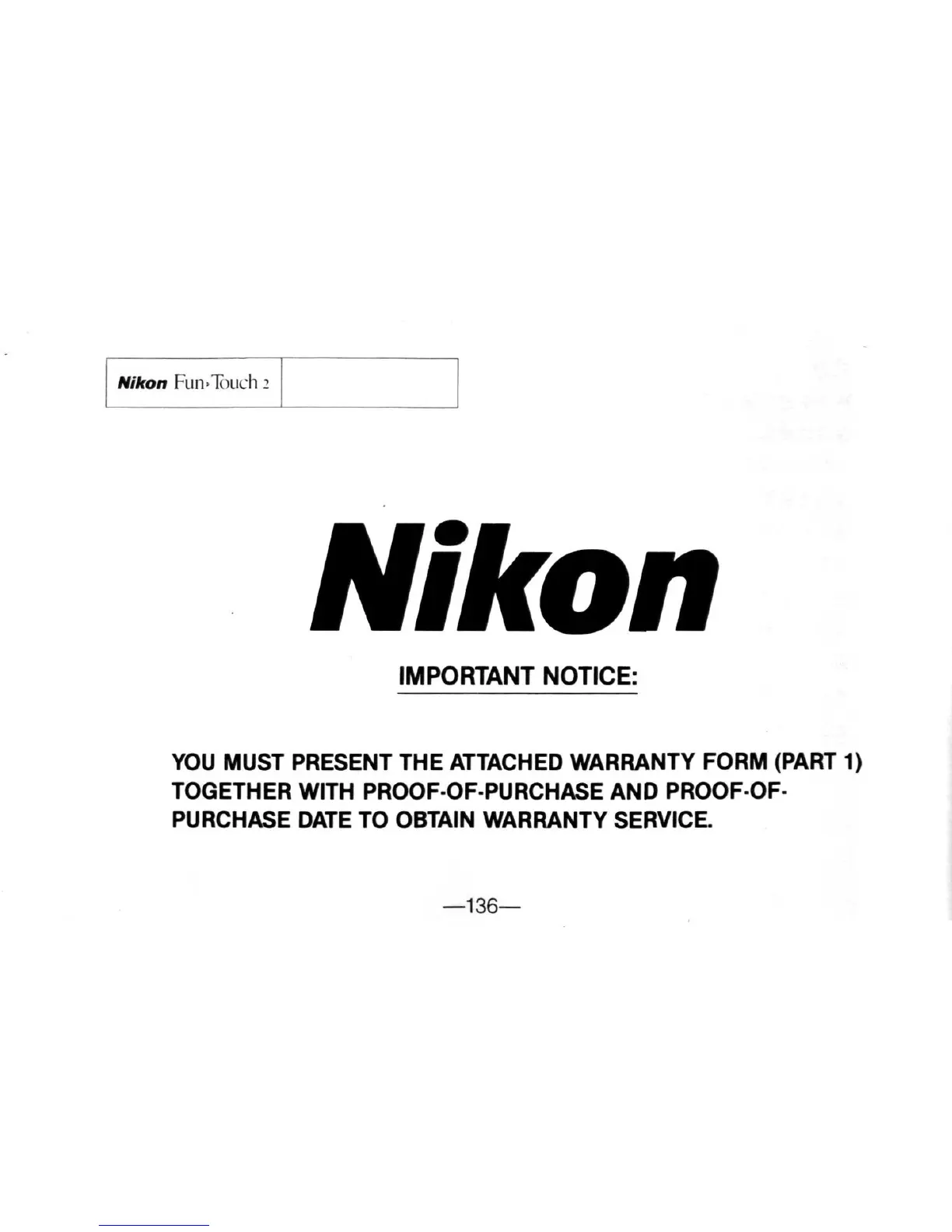Nikon Fun>Touch 2 - IMPORTANT NOTICE: