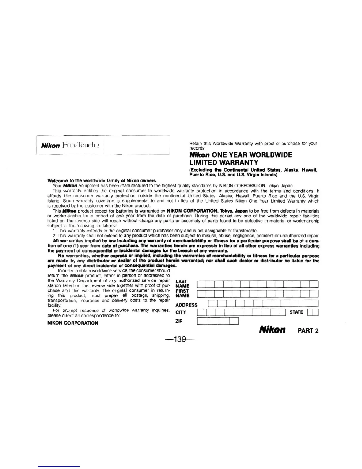 Nikon ONE YEAR WORLDWIDE