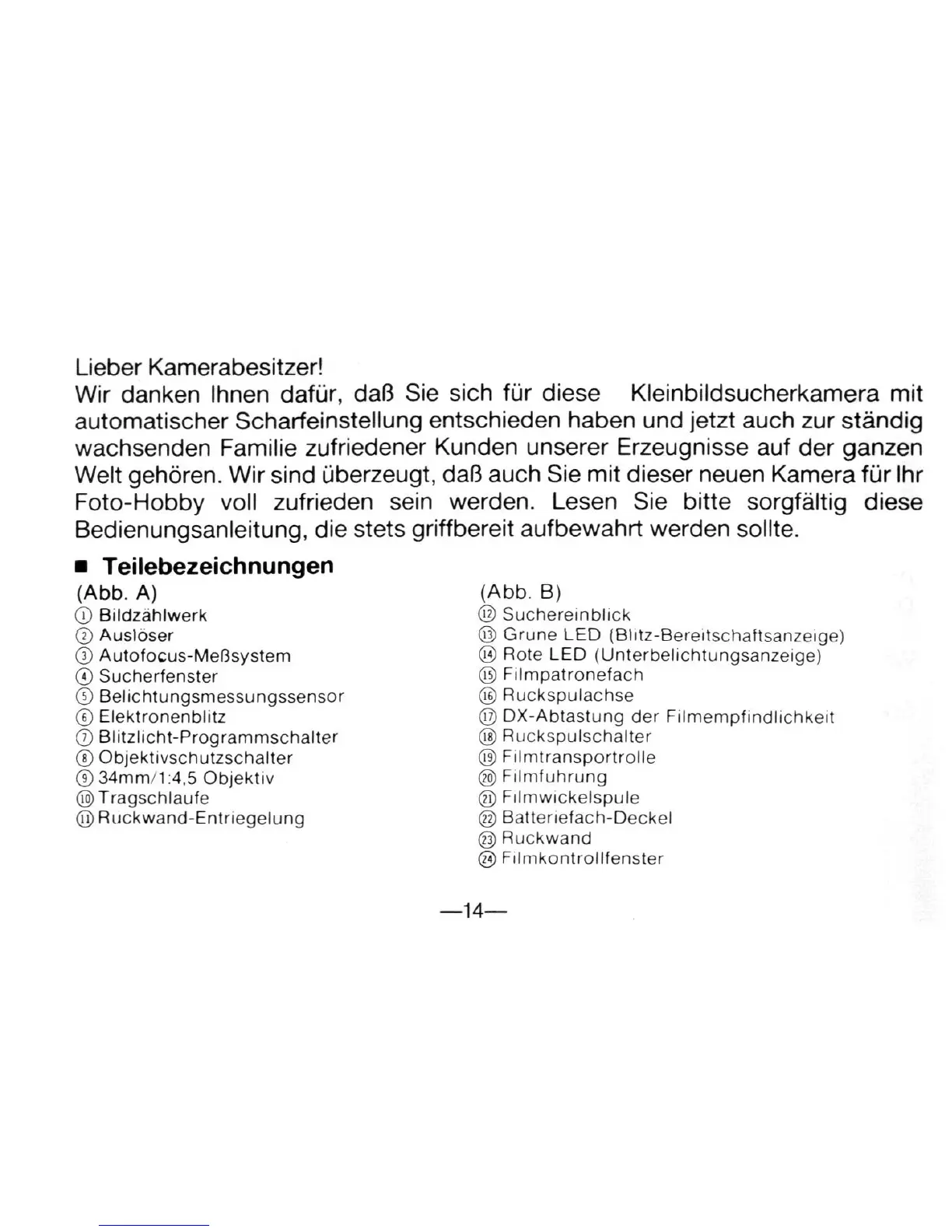 Wir danken Ihnen dafur, da(3 Sie sich fur diese Kleinbildsucherkamera mit