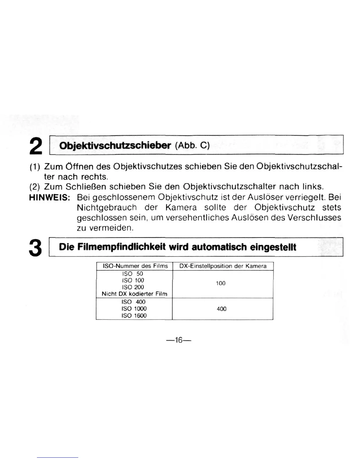 HINWEIS: Bei geschlossenem Objektivschutz ist der Ausloser verriegelt. Bei