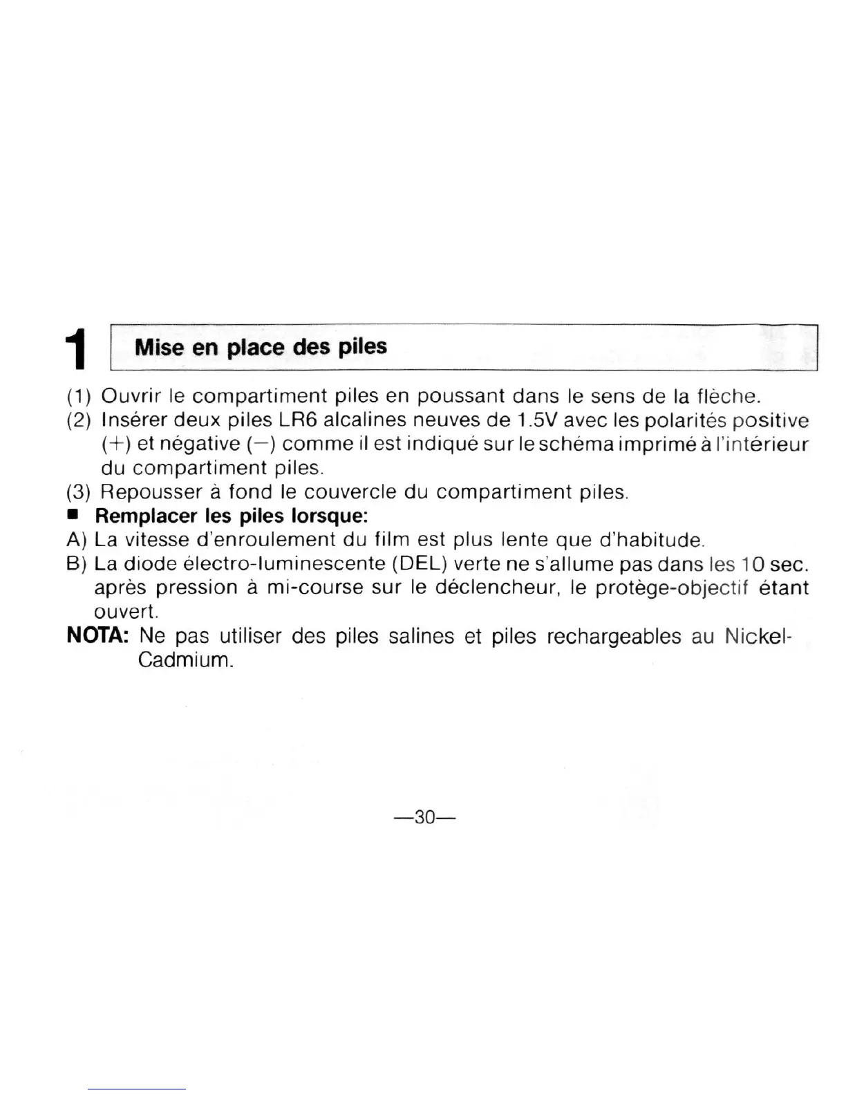 NOTA: Ne pas utiliser des piles salines et piles rechargeables au Nickel-