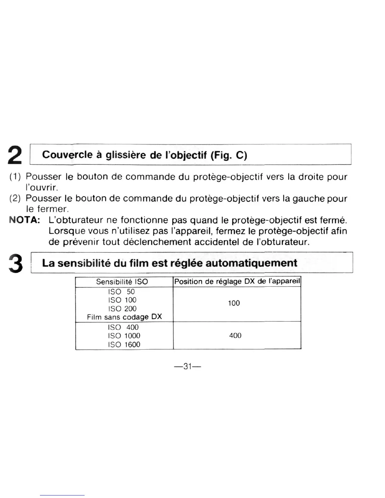 NOTA: L'obturateur ne fonctionne pas quand le protege-objectif est ferme.