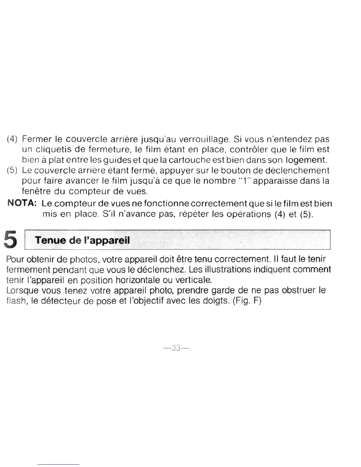 Pour obtenir de photos, votre appareil doit etre tenu correctement. II faut le tenir