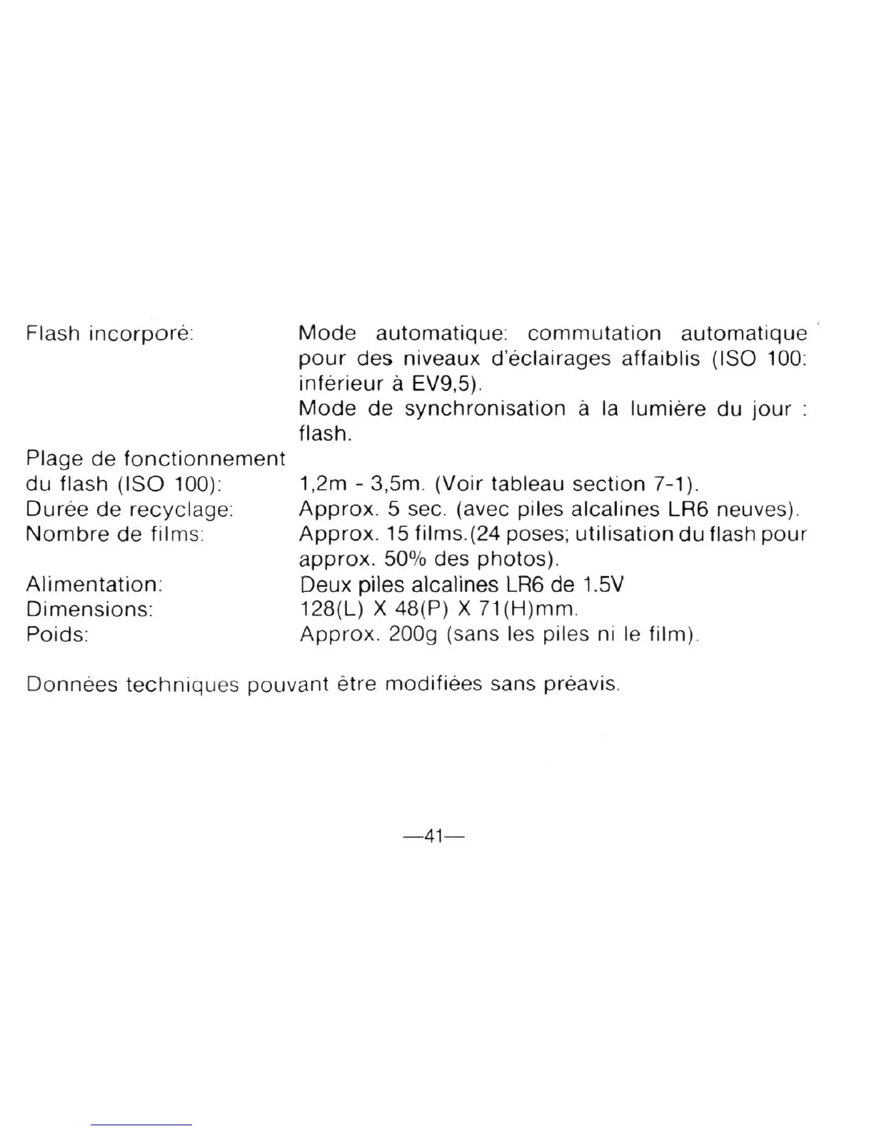 Approx. 15 films.(24 poses; utilisation du flash pour