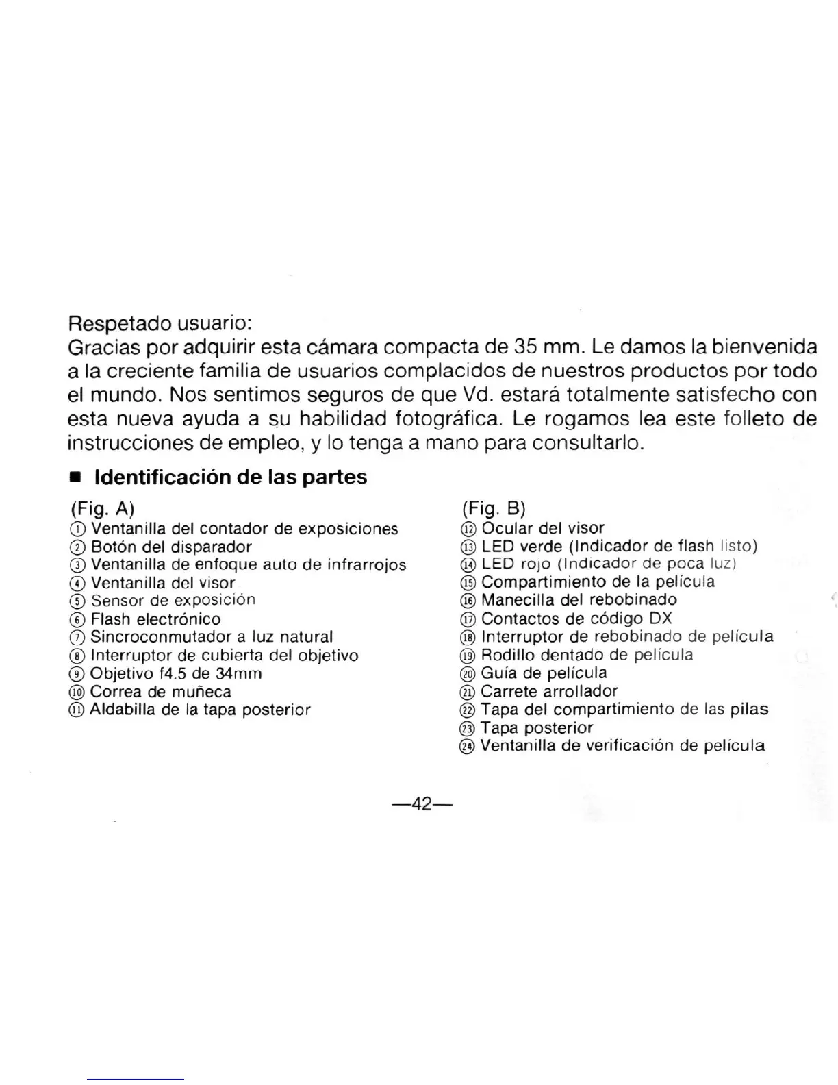 Gracias por adquirir esta camara compacta de 35 mm. Le damos la bienvenida